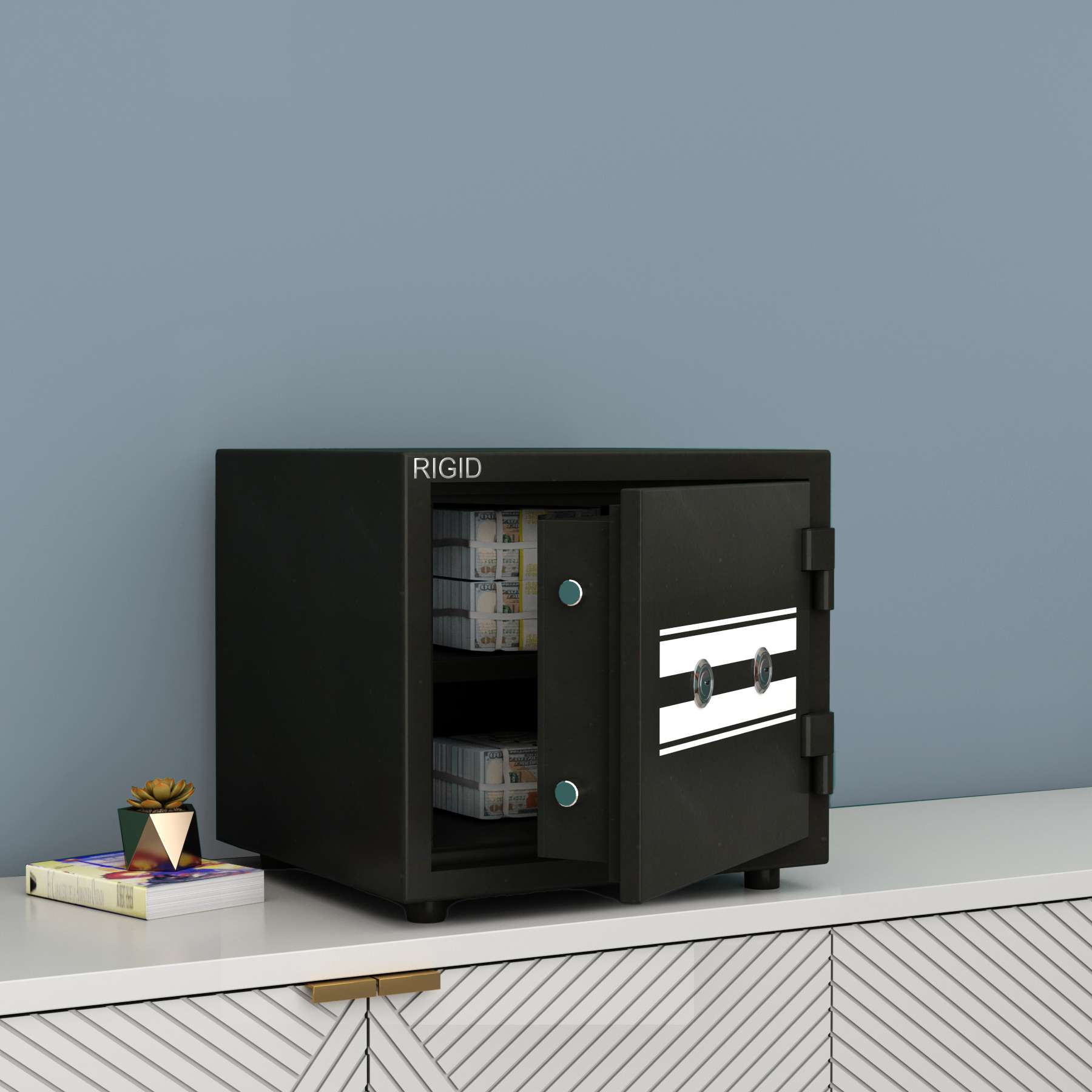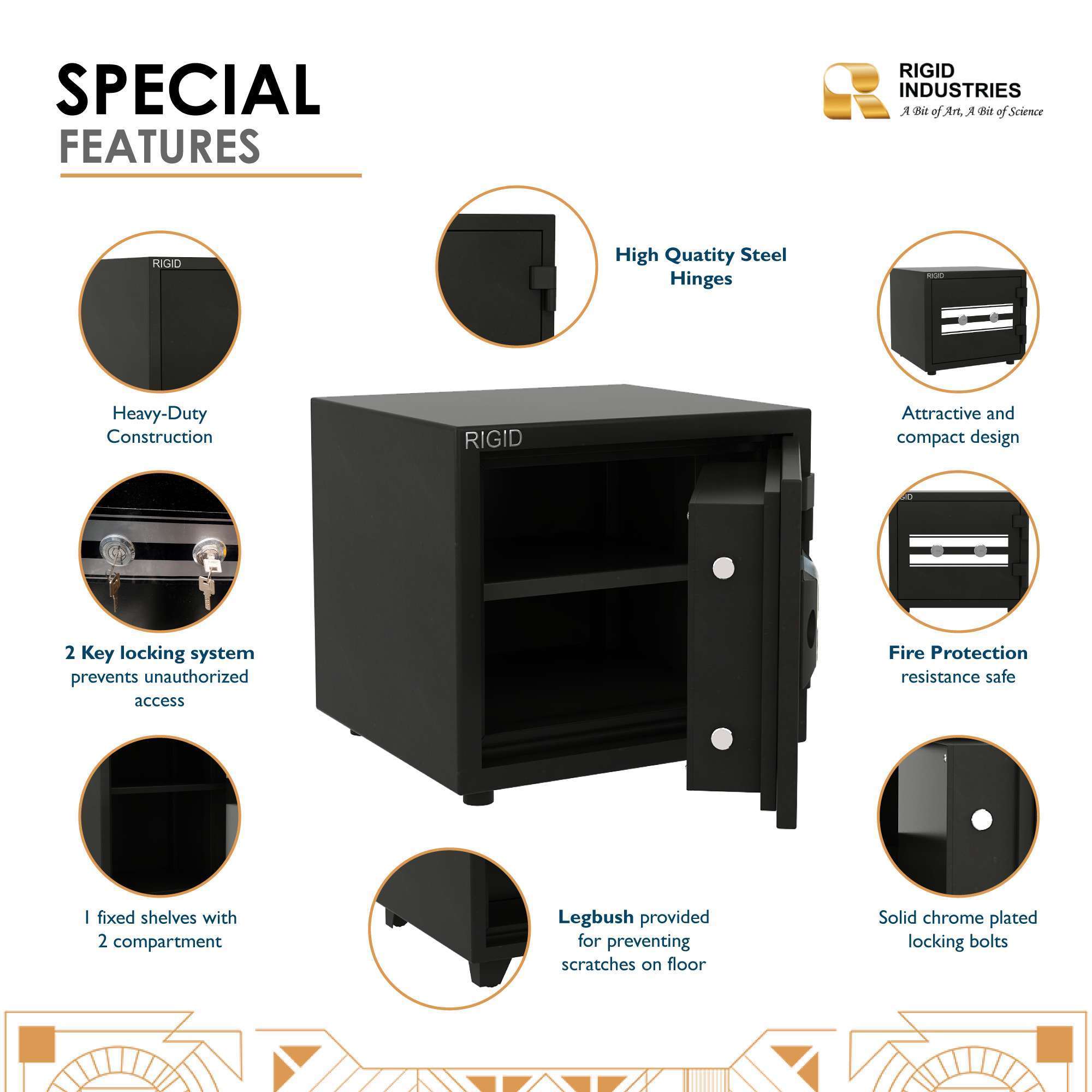 Introducing our Fire Resistant Safe 50 kg ? the ultimate solution for protecting your most valuable possessions. Designed to withstand the harshest of conditions, this safe offers both fire resistance and robust security. Crafted from high-quality steel, it ensures durability and strength, capable of withstanding both physical attacks and fire emergencies. With a generous 50 kg capacity, it provides ample space for your important documents, jewellery, cash, and other valuables. The powder coating not only enhances its visual appeal but also protects against rust and corrosion, ensuring this safe retains its pristine appearance. Plus, the inclusion of leg bushes prevents damage to your flooring and adds stability to the safe. Don’t compromise when it comes to safeguarding what matters most. Choose our Fire Resistant Safe 50 kg ? where superior construction meets uncompromising protection for your valuable belongings.