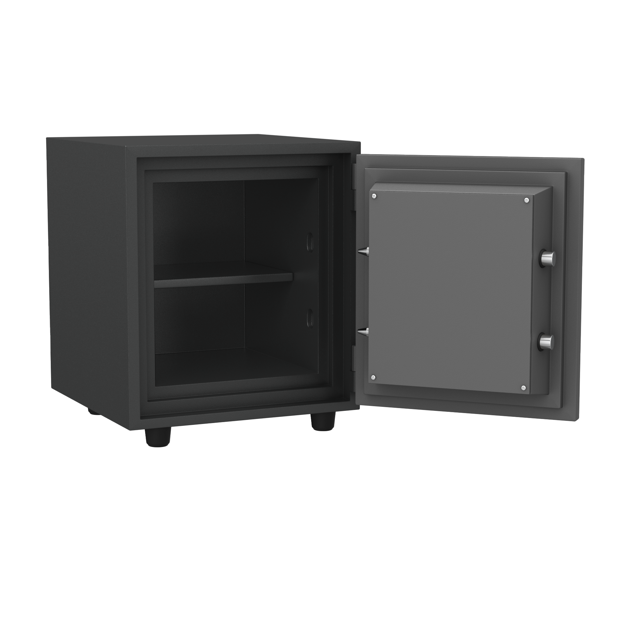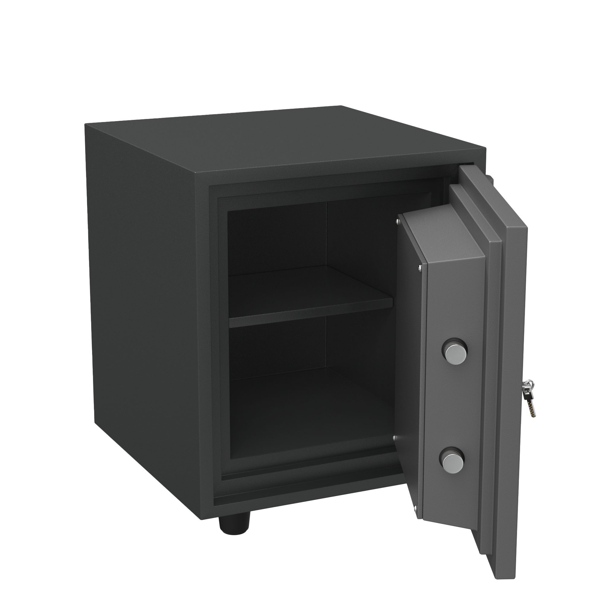 External Dimensions:H52.5cm x W43cm x D49cm Internal Dimensions: H36cm x W29cm x D31cm Gross Weight: 72kgs Fire Rated for 60mins Locking Mechanism: 2 Key Locks Color: Dark Grey(Body) & Grey (Door) Fire Resistant Safes with attractive and compact design High Quality Solid chrome plated locking bolts High Quality 0.8 MM Thickness Galvanized Sheet with Powder coating Epoxy Polyester Powder coating with Standard RAL colors. Provide highly specified combination locks, Digital and 2 key locks