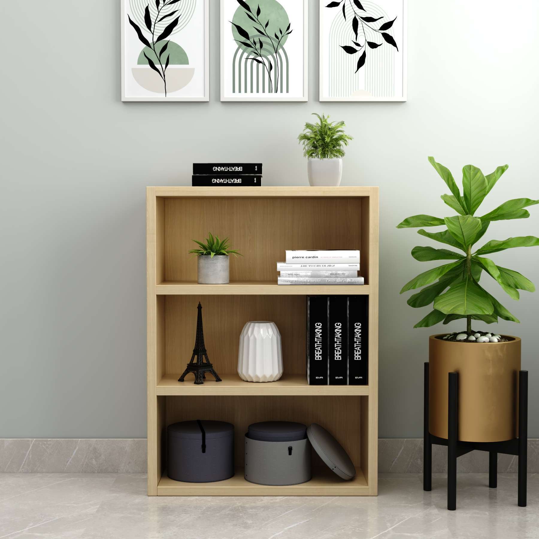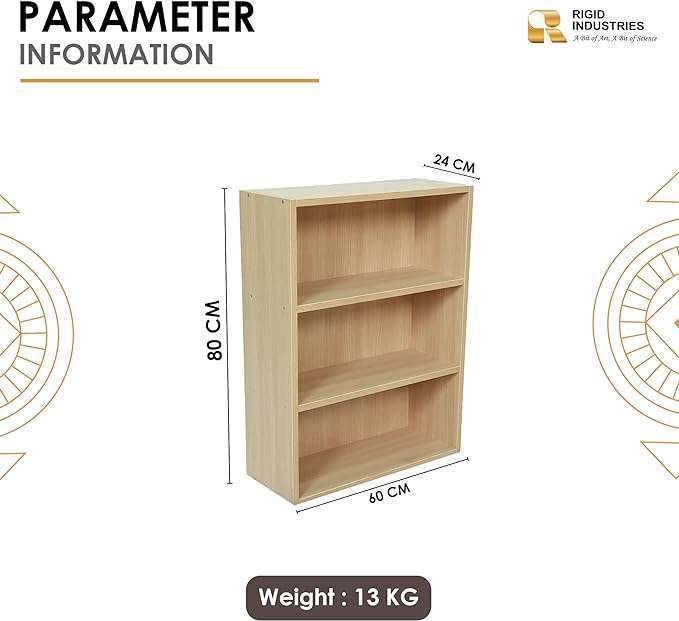• Ample Storage Space: With 2 shelves and 3 compartments, this open shelf provides generous storage capacity, allowing you to keep your essentials organised and proudly display your favourite decor items.