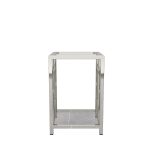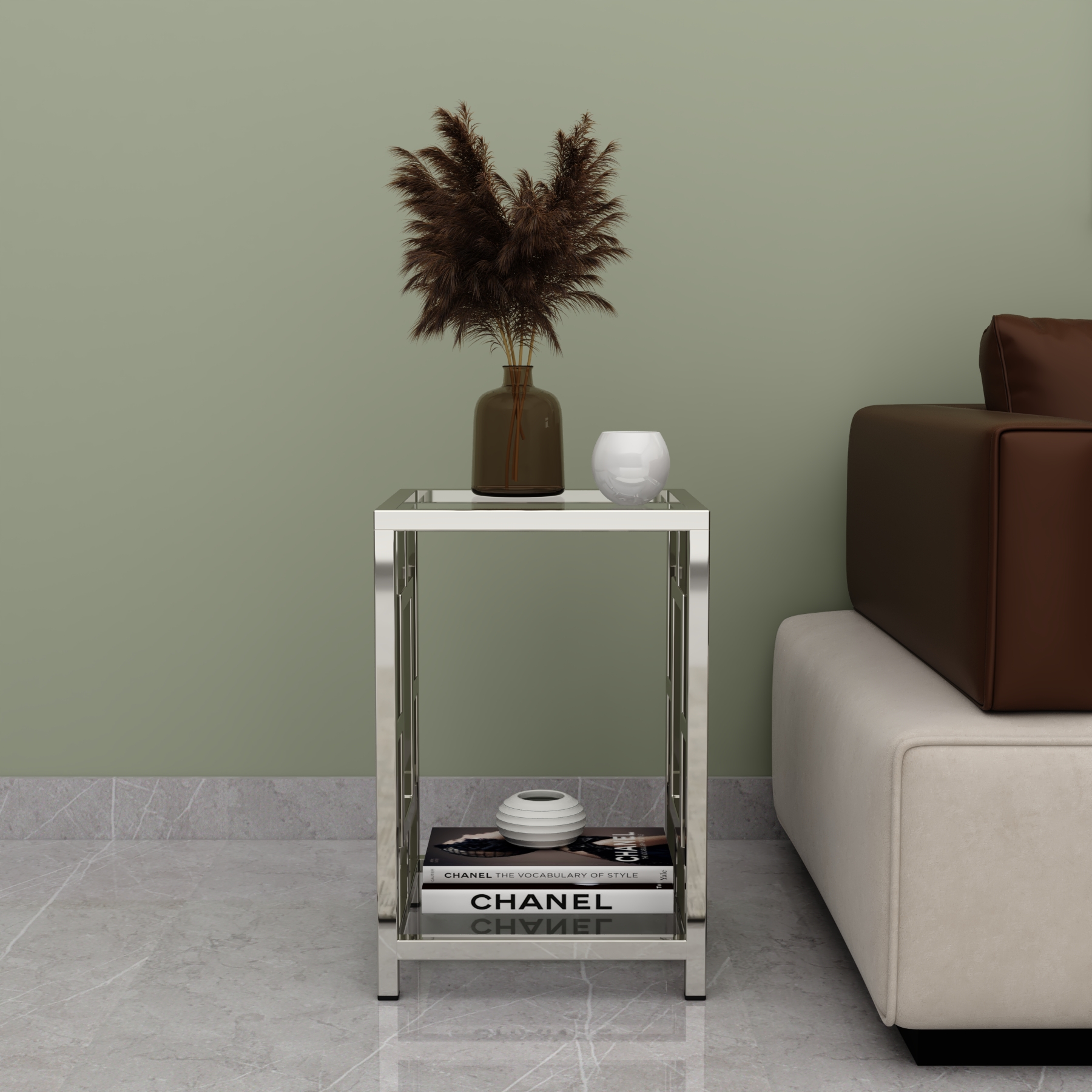Introducing our Zane Stainless Steel Glass Side Table ? a durable and versatile addition to your workspace. Crafted from high-quality stainless steel, this table is designed to withstand the rigours of daily use, whether in a bustling kitchen, a medical facility, or any environment that demands durability and hygiene. The sleek stainless steel and glass surface not only exudes a modern aesthetic but also ensures easy maintenance ? simply wipe clean for a pristine look. With a robust stainless steel frame, this table offers stability and can handle heavy loads, making it suitable for various tasks. Choose from a range of sizes to find the perfect fit for your space. Moreover, stainless steel’s natural resistance to rust and corrosion ensures that this table maintains its appearance and structural integrity for the long haul. Elevate your workspace with our Zane Stainless Steel Glass Side Table ? where durability, style, and functionality converge to enhance your daily tasks.