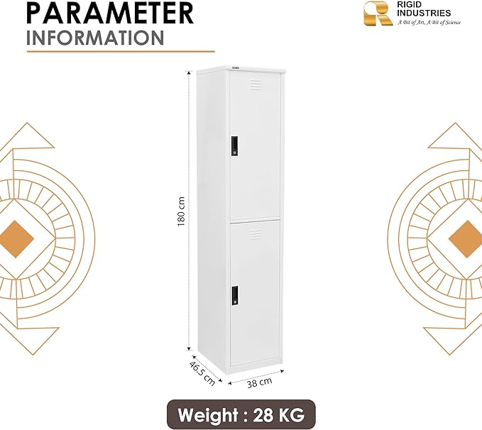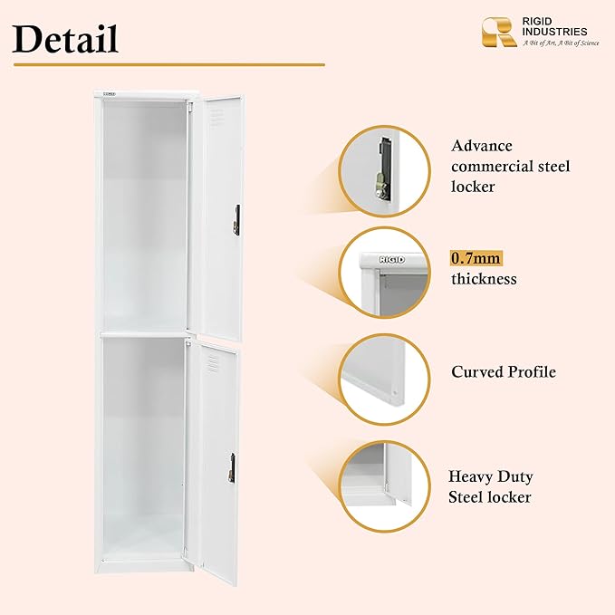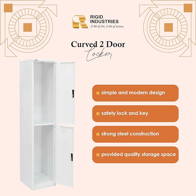 RIGID INDUSTRIES Heavy Duty Steel locker Two Doors Curved Shape 0.7mm Thickness ,Rigid Lockers are designed to store all your essential securely. Rigid lockers are made from high quality cold rolled steel.This lockers are provided with enough space for keeping all your essential. Rigid locker provide personal storage for various employees in environment such as Hospital, Office, Camp, Home, Gym etc.. Color of this locker held to blend perfectly with any environment.