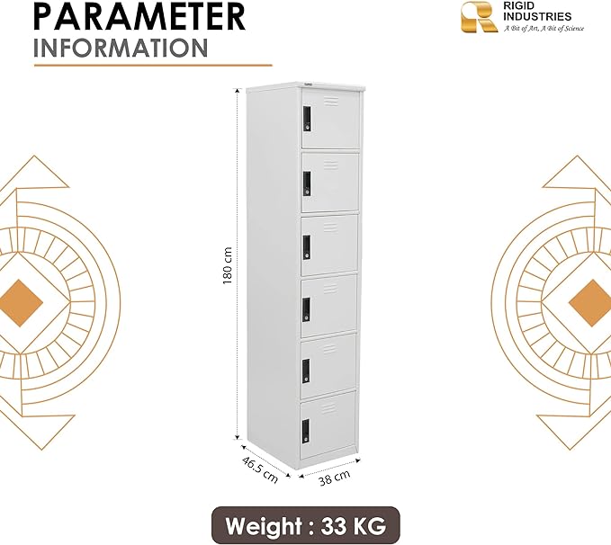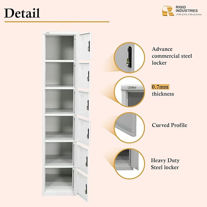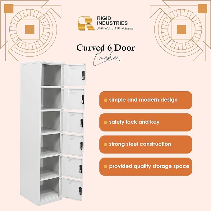 RIGID INDUSTRIES Heavy Duty Steel locker Six Doors Curved Shape 0.7mm Thickness: Rigid Lockers are designed to store all your essential securely. Rigid lockers are made from high quality cold rolled steel.This lockers are provided with space for keeping all your essential. Rigid locker provide personal storage for employees in various environment such as Hospital, Office, Camp, Home, Gym etc.. Color of this locker held to blend perfectly with any environment.